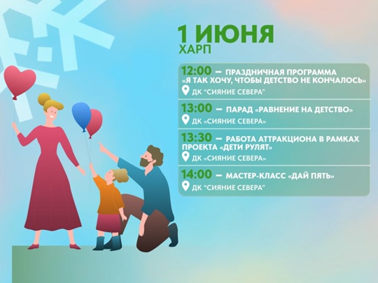 Для маленьких жителей Лабытнанги и Харпа в округе будут организованы яркие и интересные мероприятия. Интерактивные программы, театрализованные представления, творческие мастер-классы и множество сюрпризов ждут вас!